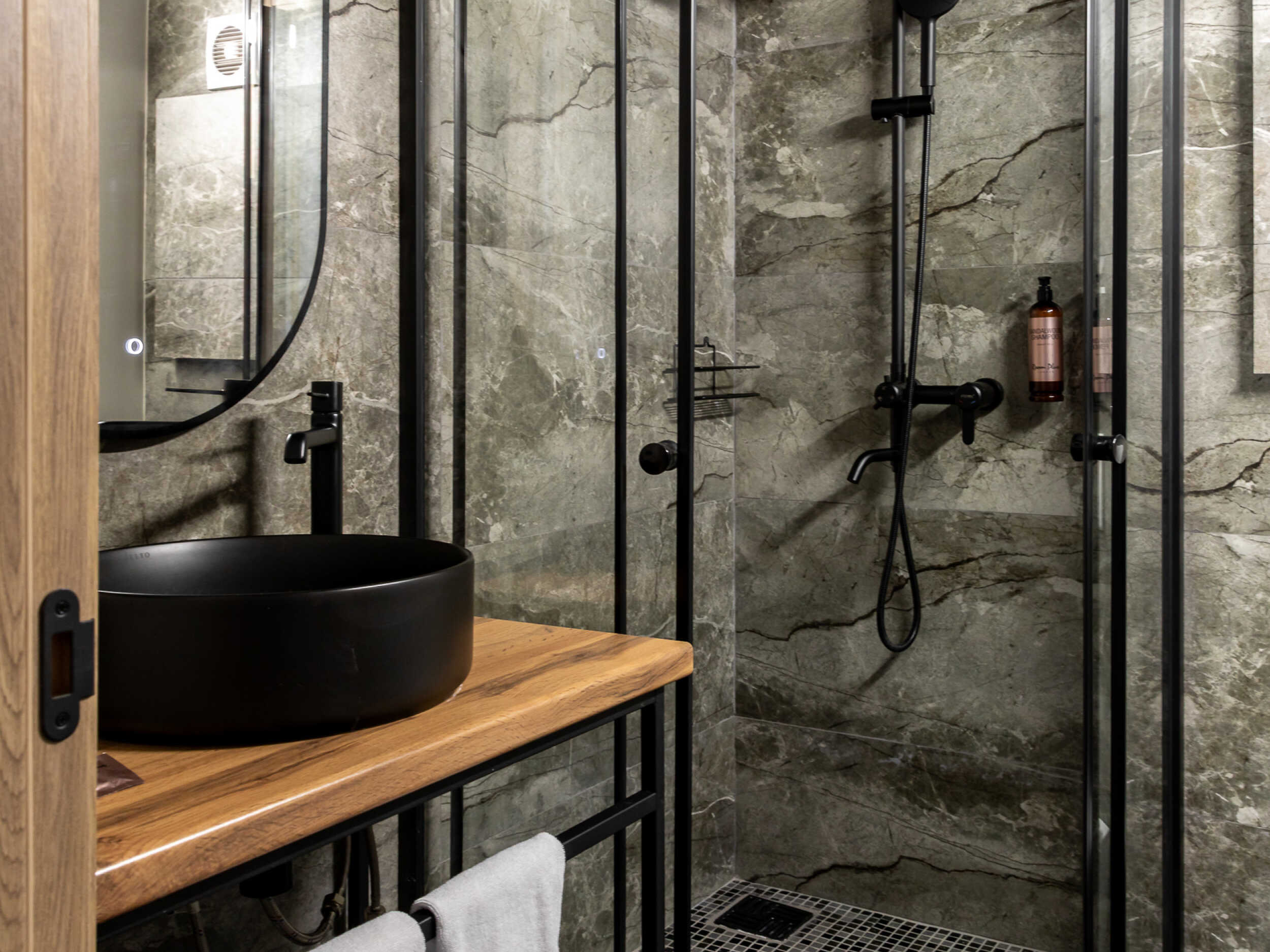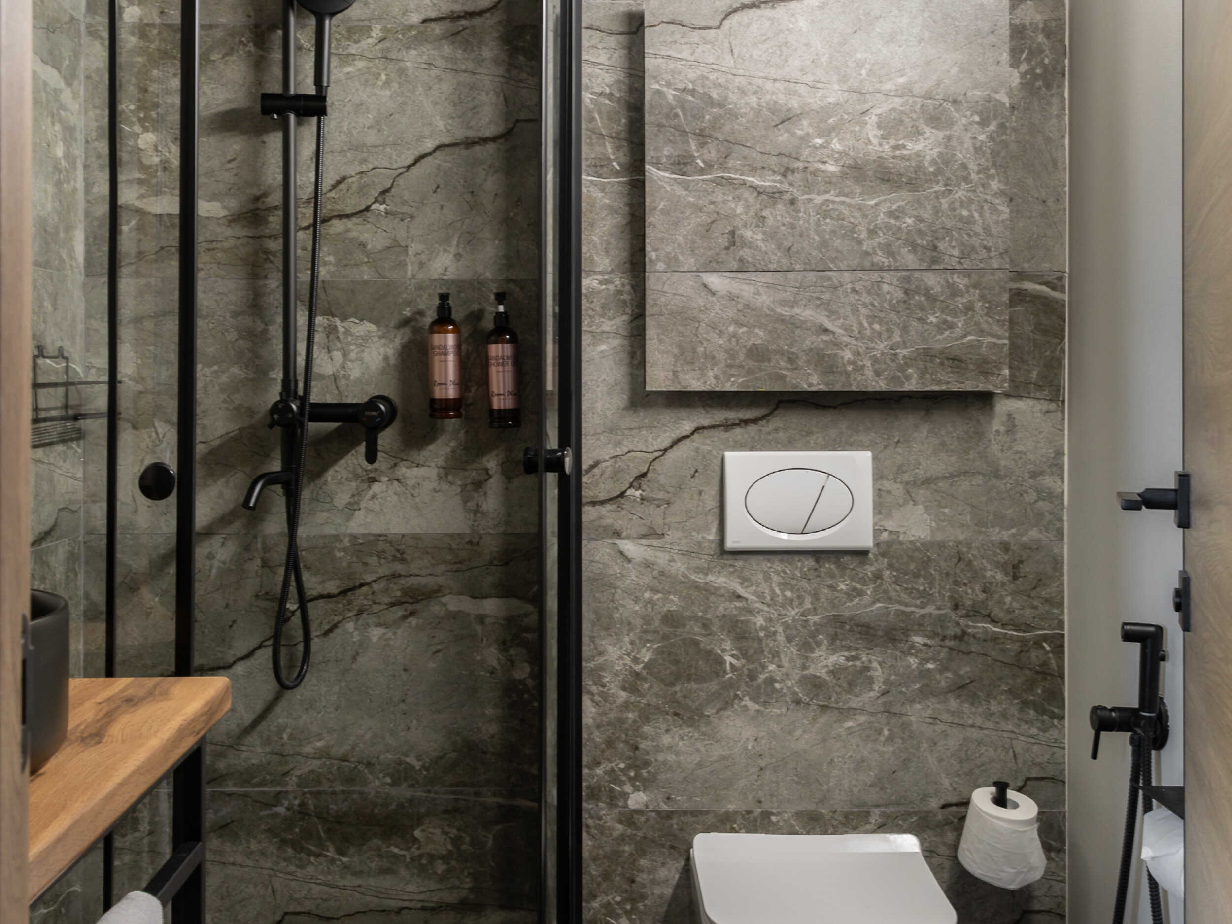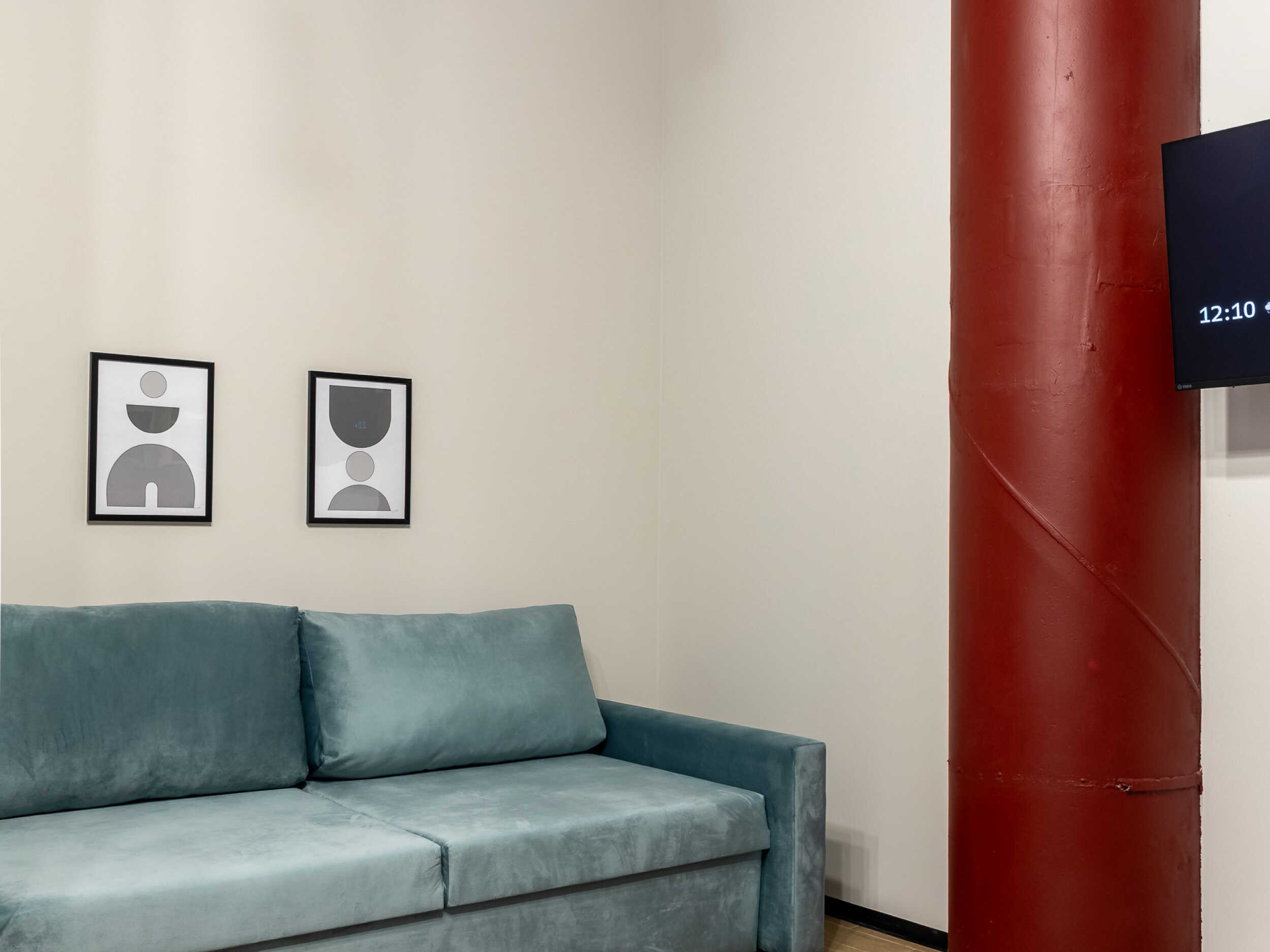 Modern apartment with extended space and stylish interior. First floor — living room and kitchen, second — cozy bedroom. Perfect choice for long stays or a romantic weekend.