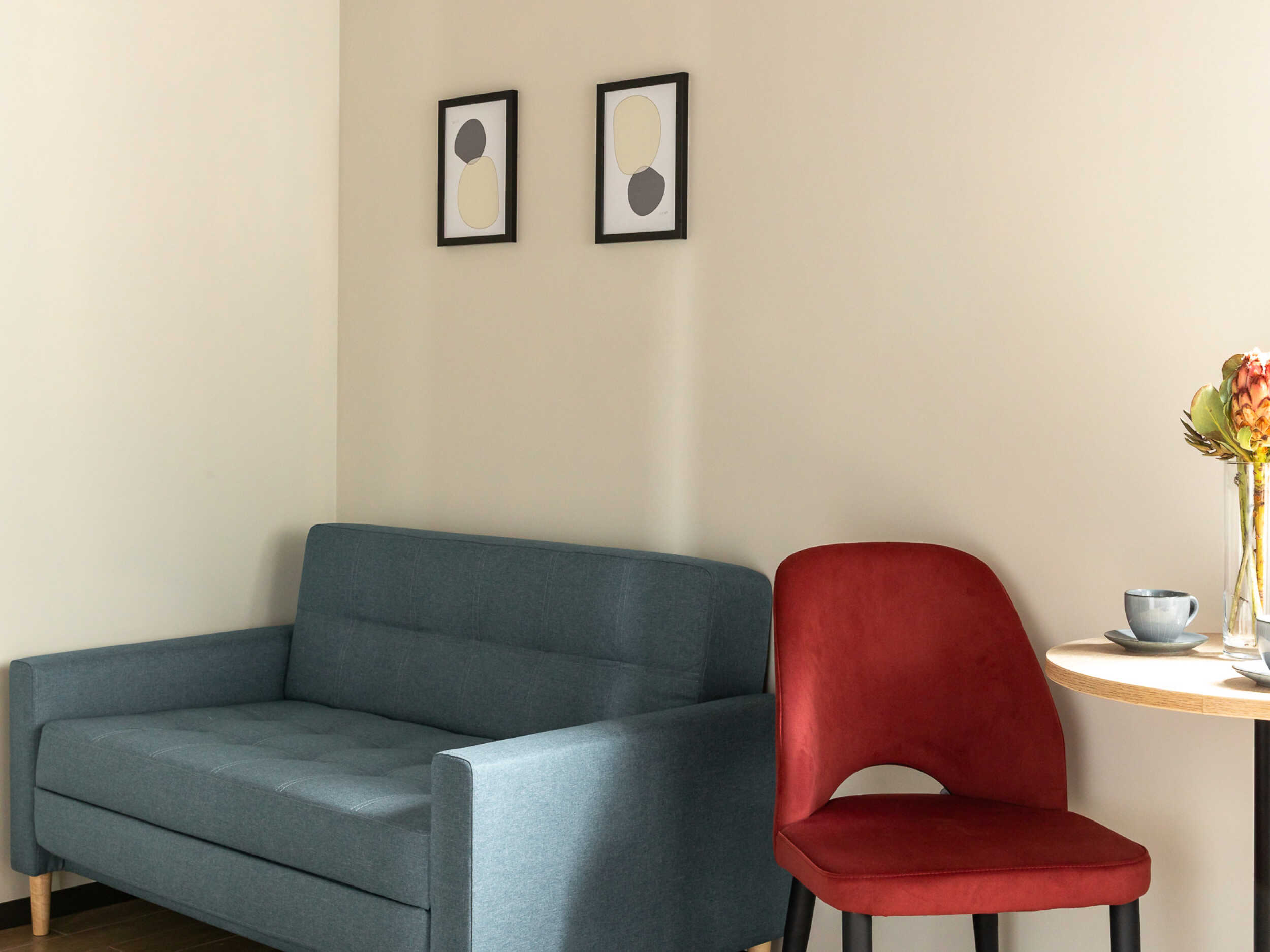 Просторные апартаменты с дизайнерским интерьером, кухней и зоной отдыха. Разделение этажей обеспечивает ощущение личного пространства, а панорамные окна наполняют номер светом. Отличный баланс стиля и уюта.